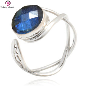 Faceted Oval Shape Rainbow Moonstone 925 Sterling Silver Gold Plated Ring