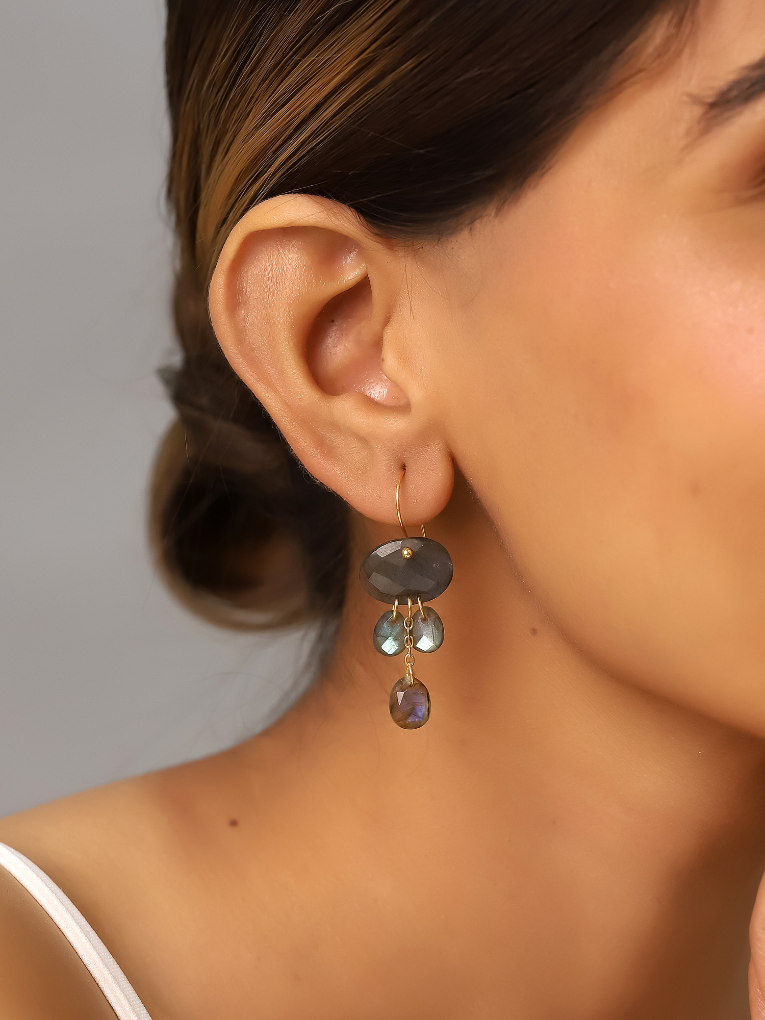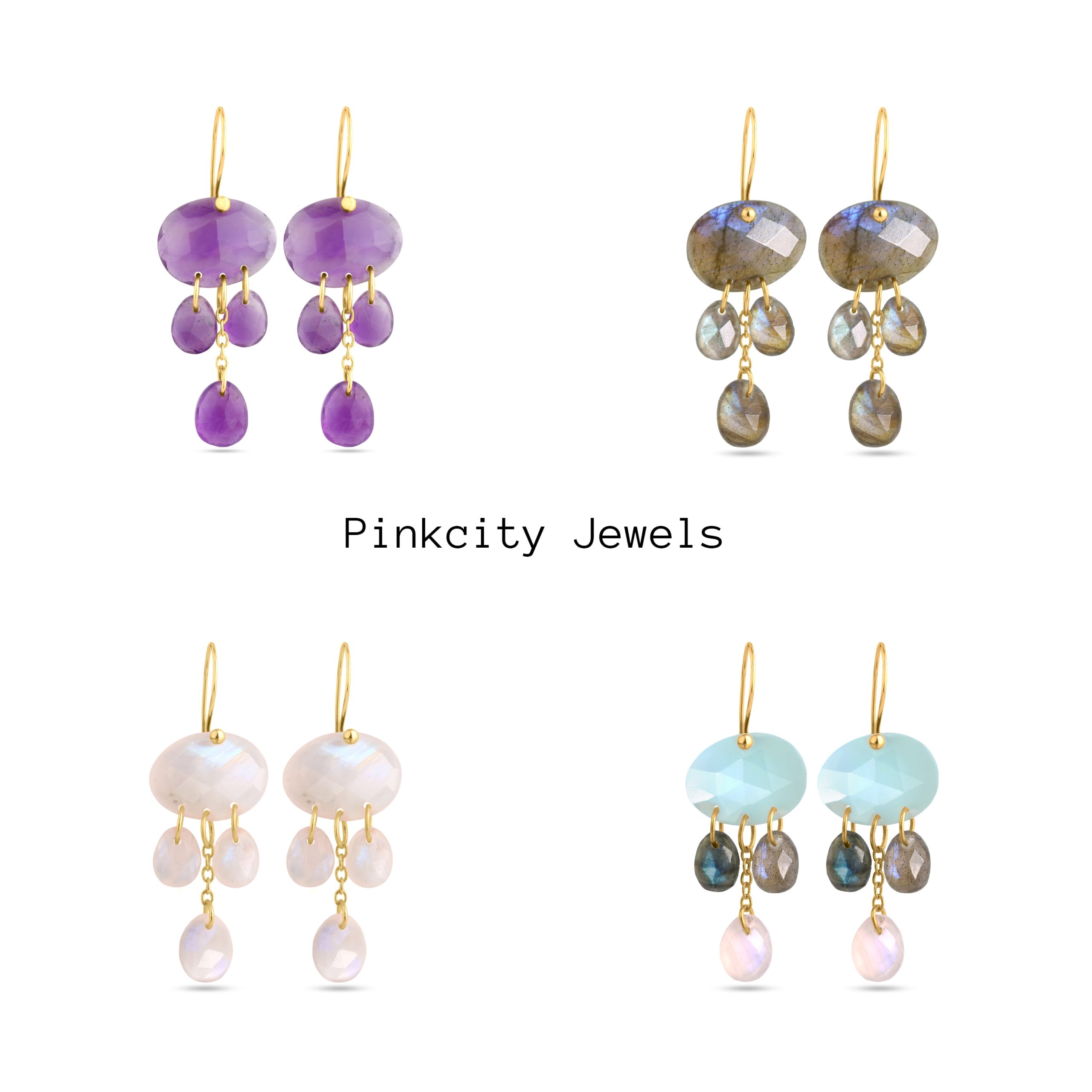 Be the first to review “Egg Shape Faceted Gemstone Gold Plated Silver Earring”