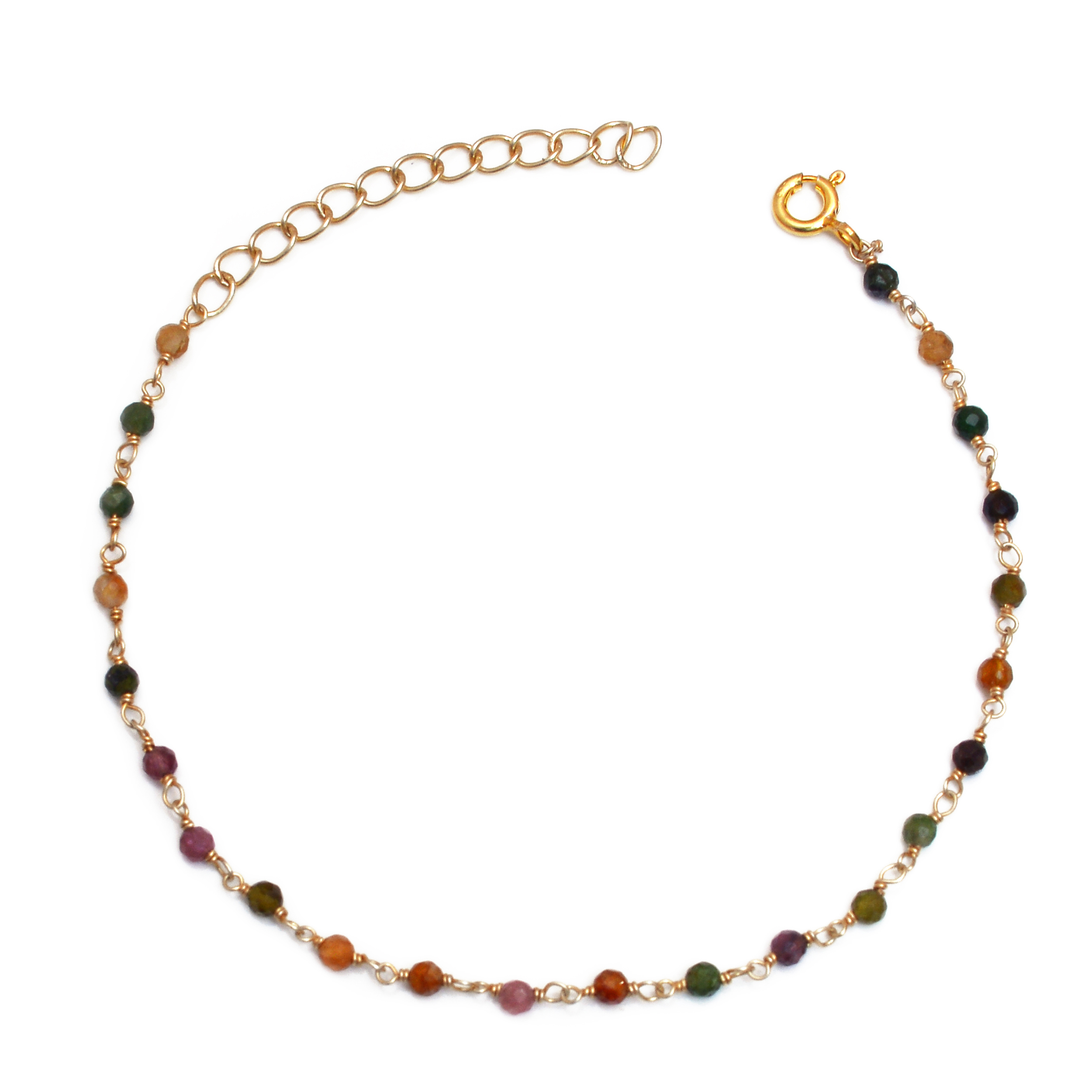 Shop an elegant multi-tourmaline gemstone bracelet in gold finish. Lightweight, adjustable & perfect for daily wear, gifting & layering.